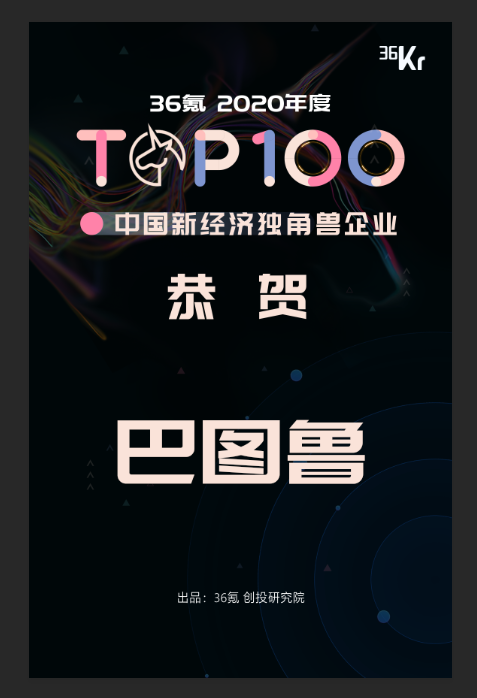 11月3日,權(quán)威媒體36氪發(fā)布了「2020年度中國(guó)新經(jīng)濟(jì)獨(dú)角獸企業(yè)TOP100」,巴圖魯實(shí)力入榜,成為汽車后市場(chǎng)獨(dú)角獸代表性企業(yè)。