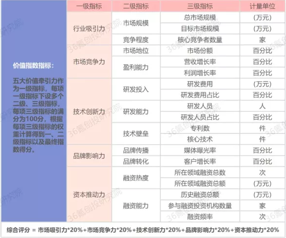 36 氪創(chuàng)投研究院動(dòng)態(tài)跟蹤觀察了新經(jīng)濟(jì)市場(chǎng)獨(dú)角獸企業(yè)們,根據(jù)學(xué)術(shù)界和一級(jí)市場(chǎng)參與者們對(duì)獨(dú)角獸企業(yè)的成長(zhǎng)機(jī)制及估值研究,結(jié)合問卷調(diào)研、桌面研究、數(shù)據(jù)整理等方式,回溯了每一家獨(dú)角獸企業(yè)自其成立以來(lái)的表現(xiàn),并建立【價(jià)值指數(shù)模型】為獨(dú)角獸們?cè)u(píng)分。